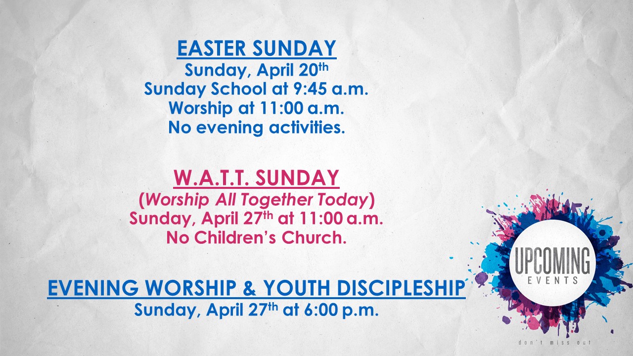 Here’s what’s coming up at First Baptist Church. Check back regularly for more.